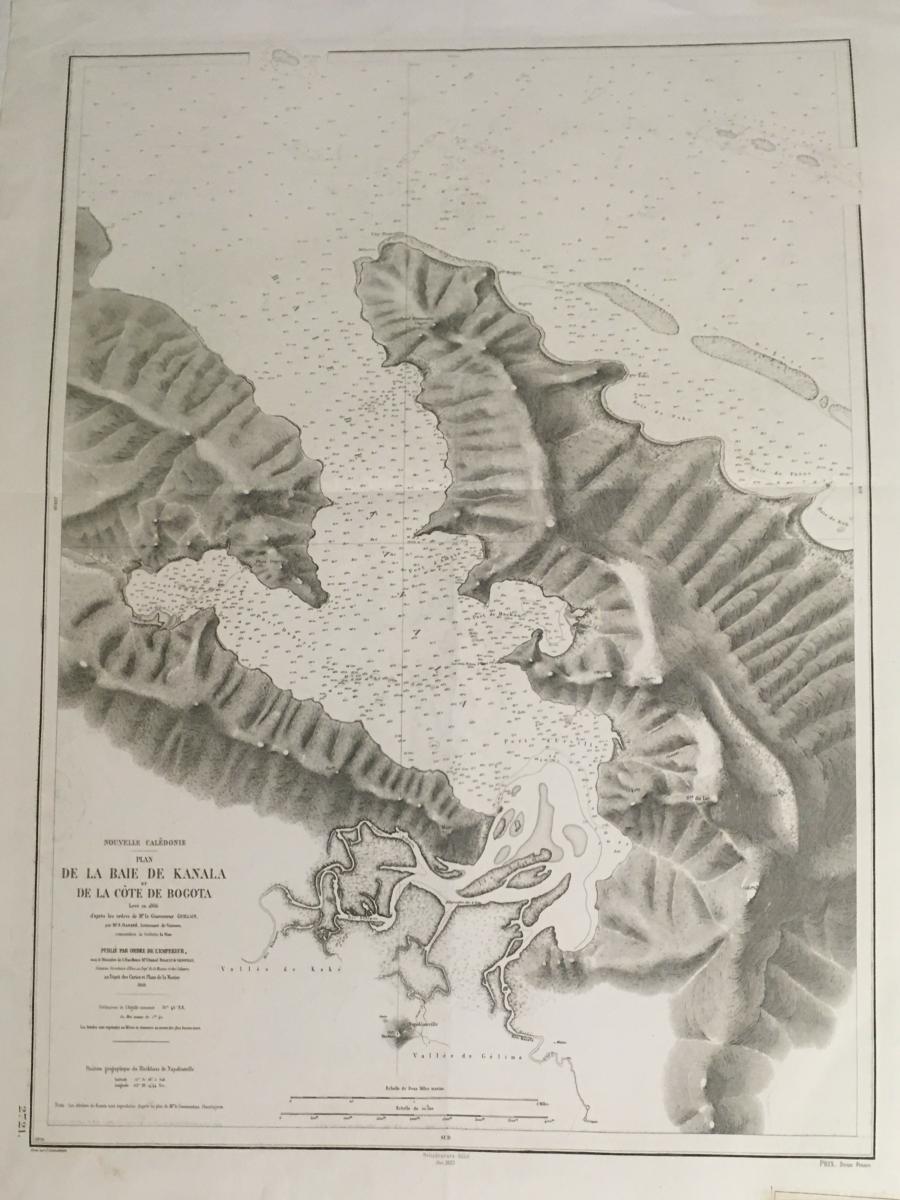 Sjökort, Nya Kaledonien 1868. På franska 'Nouvelle Caledonie, De la Baie de Kanala '