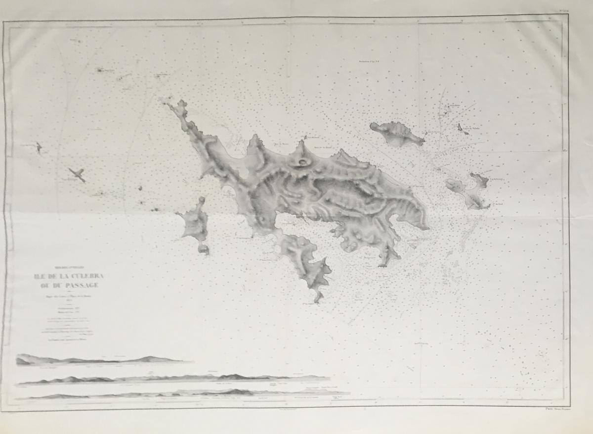 Sjökort, Culebra är en ö i Puerto Rico 1875. På franska 'Ile de la Culebra ou du passage'