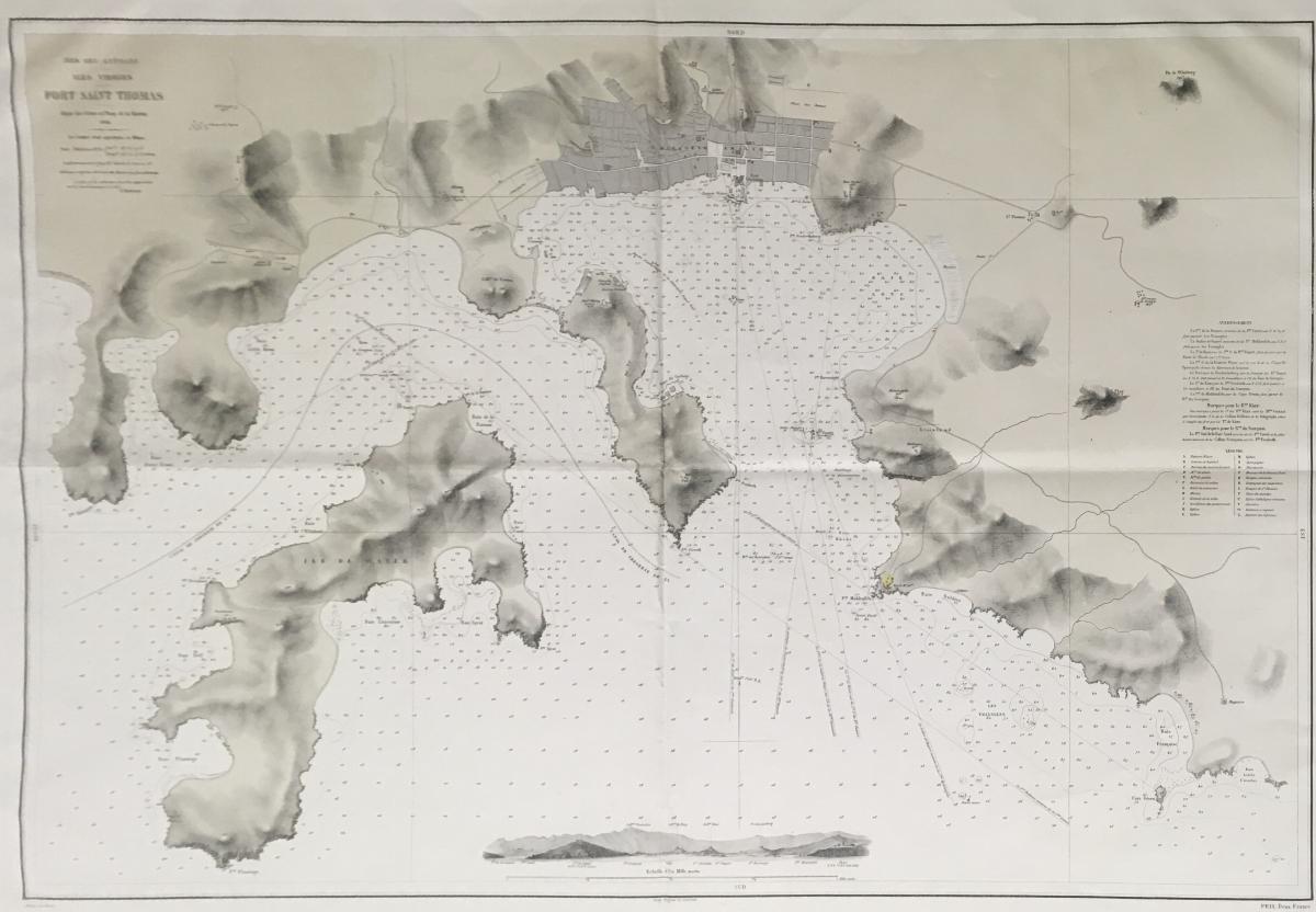 Sjökort, Antillerna 1866. På franska 'Port Saint Thomas, Mer des Antilles'