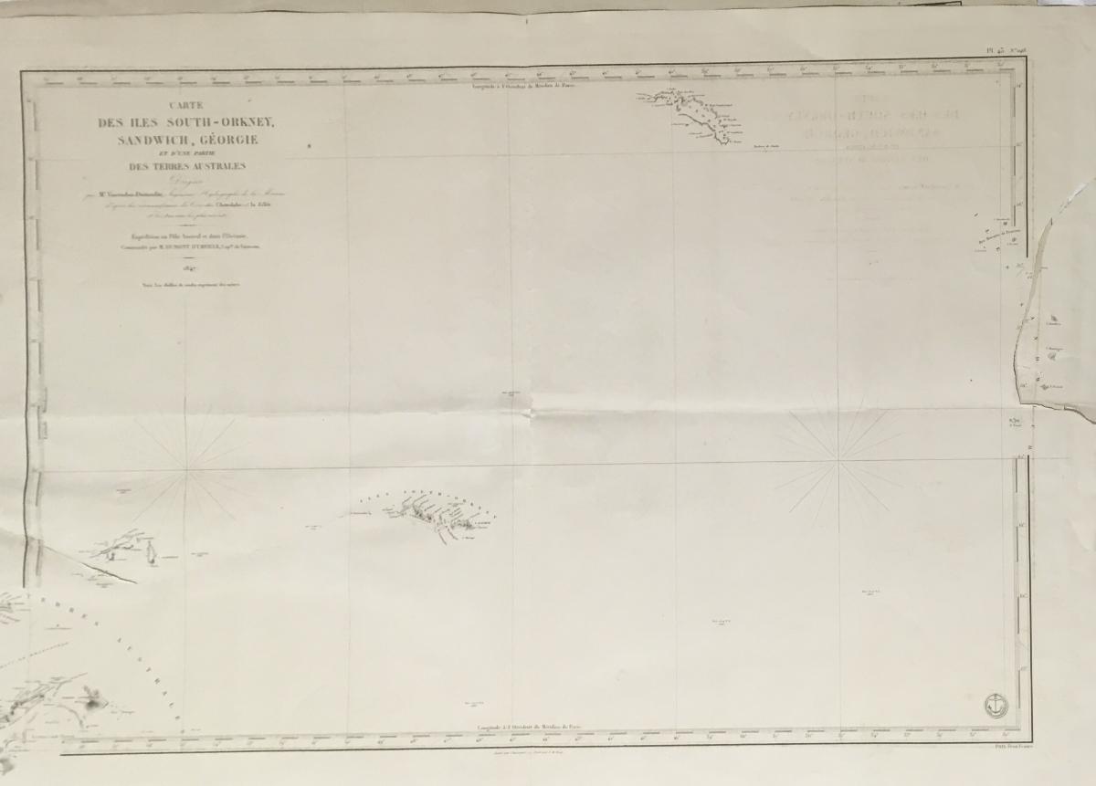 Sjökort, Sydgeorgien och Sydsandwichöarna 1847 På franska 'Des Iles South-Orkney, Sandwich, Georgie'