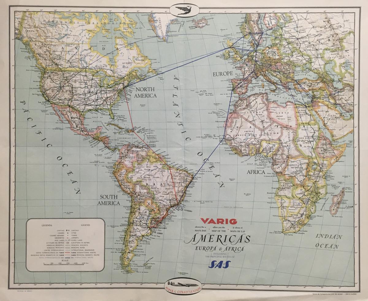 Världskarta med SASs huvudvägar.