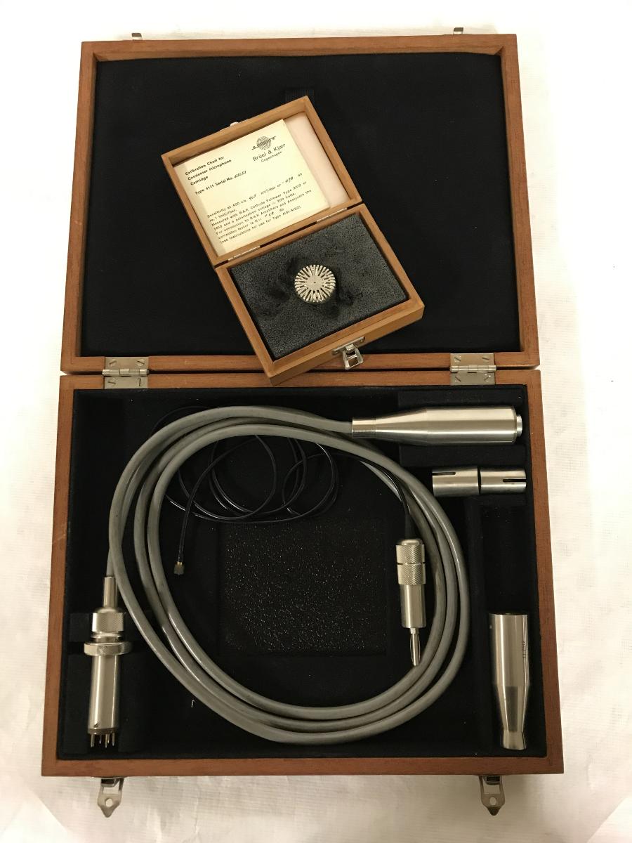 Mikrofon i trälåda. Används för mätning av vibrationer.