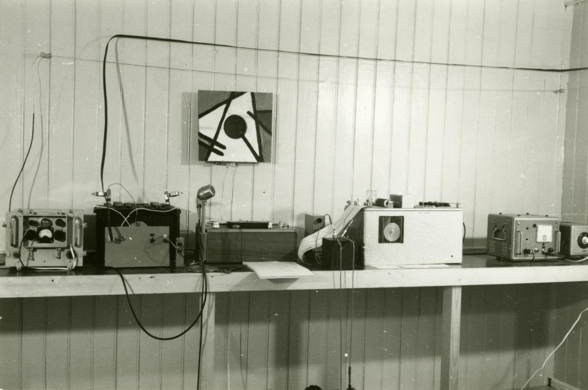 Arbete i försöksanläggningen, flera mindre maskiner står på ett bord. Bild från Chalmers Tekniska Högskolas försöksanläggning för skeppshydrodynamik i Långedrag.