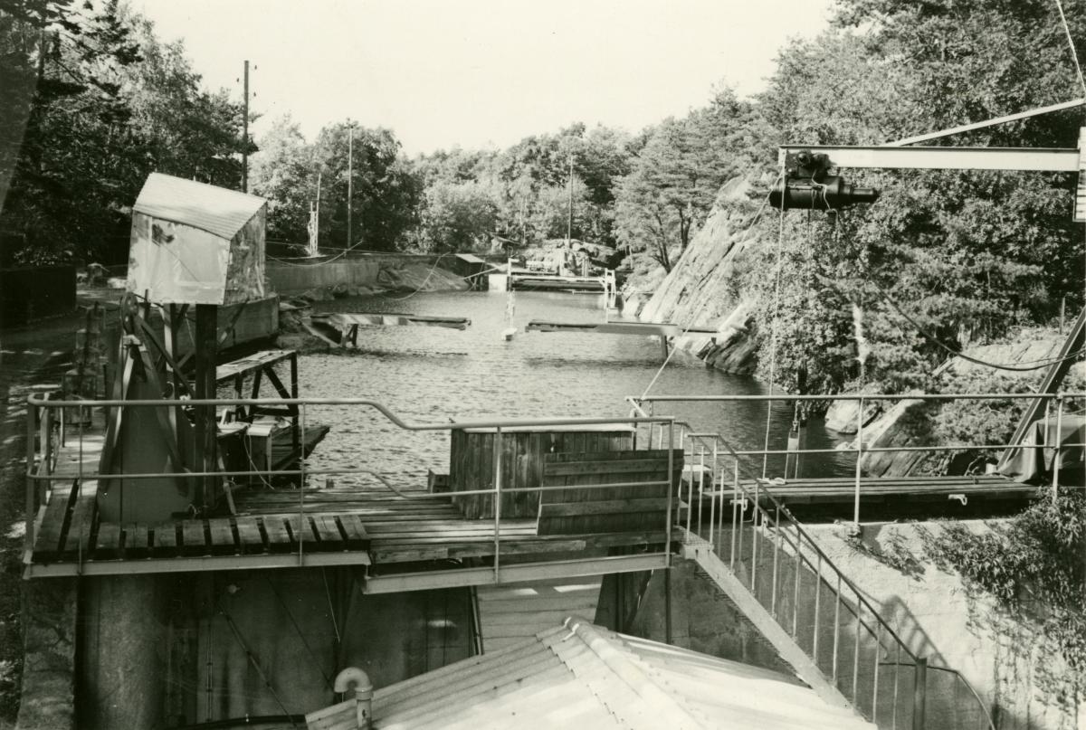 Testränna utomhus i försöksanläggningen. Bild från Chalmers Tekniska Högskolas försöksanläggning för skeppshydrodynamik i Långedrag.
