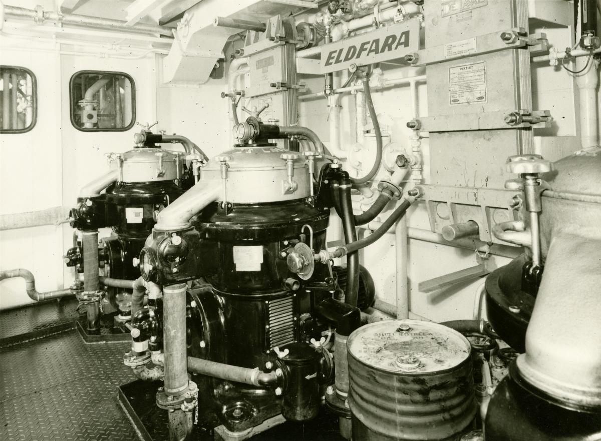 Separatorrum med De Laval plattkylare. Bild i fotoalbum, sannolikt tagen i samband med eller strax efter leverans till rederiet