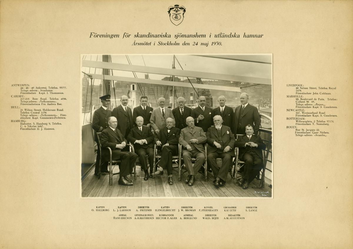 Deltagare vid årsmötet för Föreningen för skandinaviska sjömanshem i utländska hamnar i Stockholm 24 maj 1930