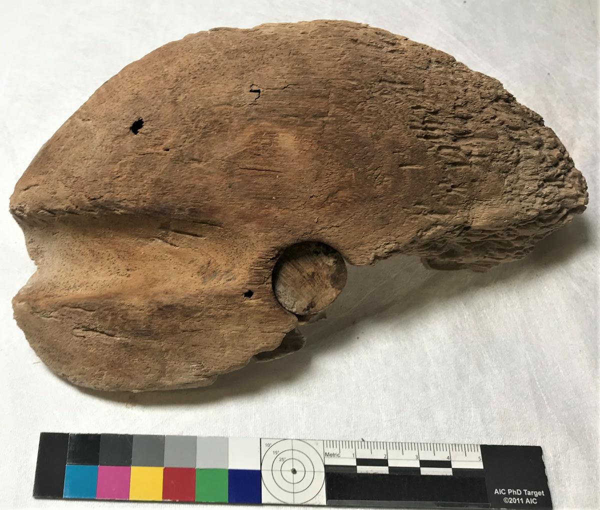 Föremålet är från vraket av ostindiefararen Götheborg, som gjorde tre resor till Kina 1739-45. Vid hemkomsten från den sista resan 12 september 1745 förliste fartyget vid grundet Hunnebådan strax utanför Nya Elfsborgs fästning. Vid flera tillfällen har material tagits upp från vraket. Föremålet kommer från de marinarkeologiska utgrävningarna på platsen 1986-1992.