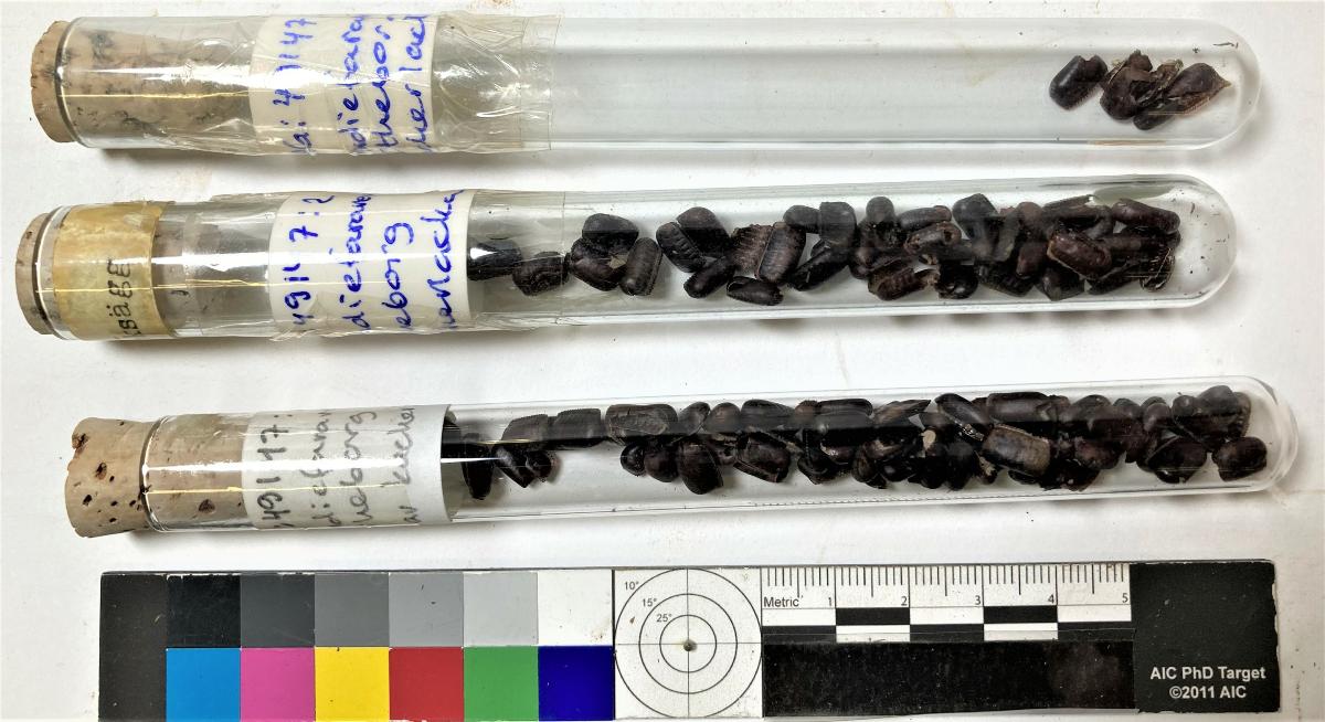 3 provrör med skal av kackerlacksägg.