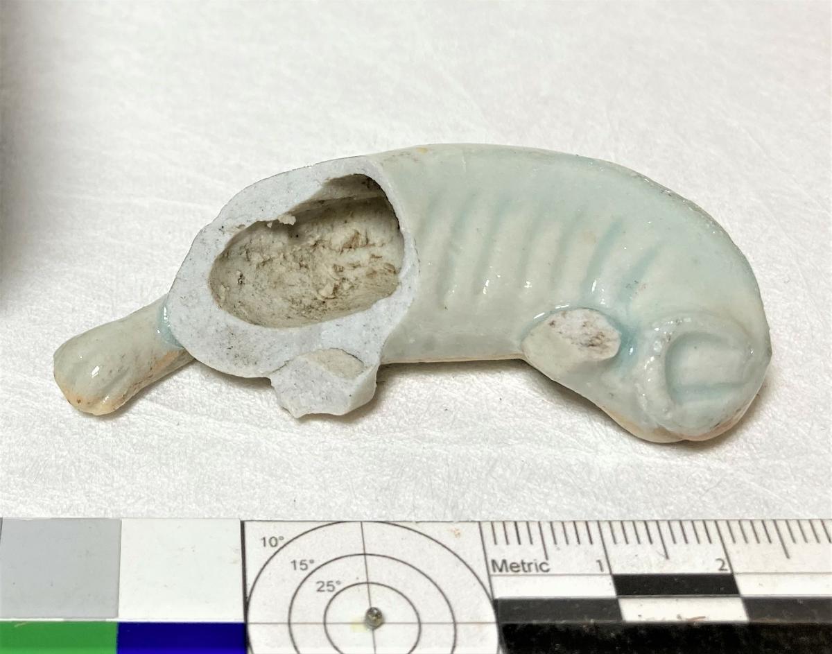 Föremålet är från vraket av ostindiefararen Götheborg, som gjorde tre resor till Kina 1739-45. Vid hemkomsten från den sista resan 12 september 1745 förliste fartyget vid grundet Hunnebådan strax utanför Nya Elfsborgs fästning. Vid flera tillfällen har material tagits upp från vraket. Föremålet kommer från de marinarkeologiska utgrävningarna på platsen 1986-1992.