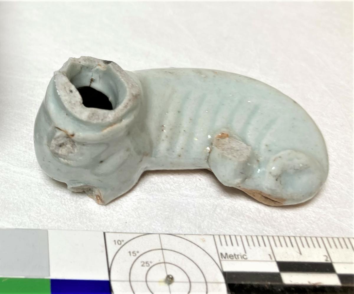 Föremålet är från vraket av ostindiefararen Götheborg, som gjorde tre resor till Kina 1739-45. Vid hemkomsten från den sista resan 12 september 1745 förliste fartyget vid grundet Hunnebådan strax utanför Nya Elfsborgs fästning. Vid flera tillfällen har material tagits upp från vraket. Föremålet kommer från de marinarkeologiska utgrävningarna på platsen 1986-1992.