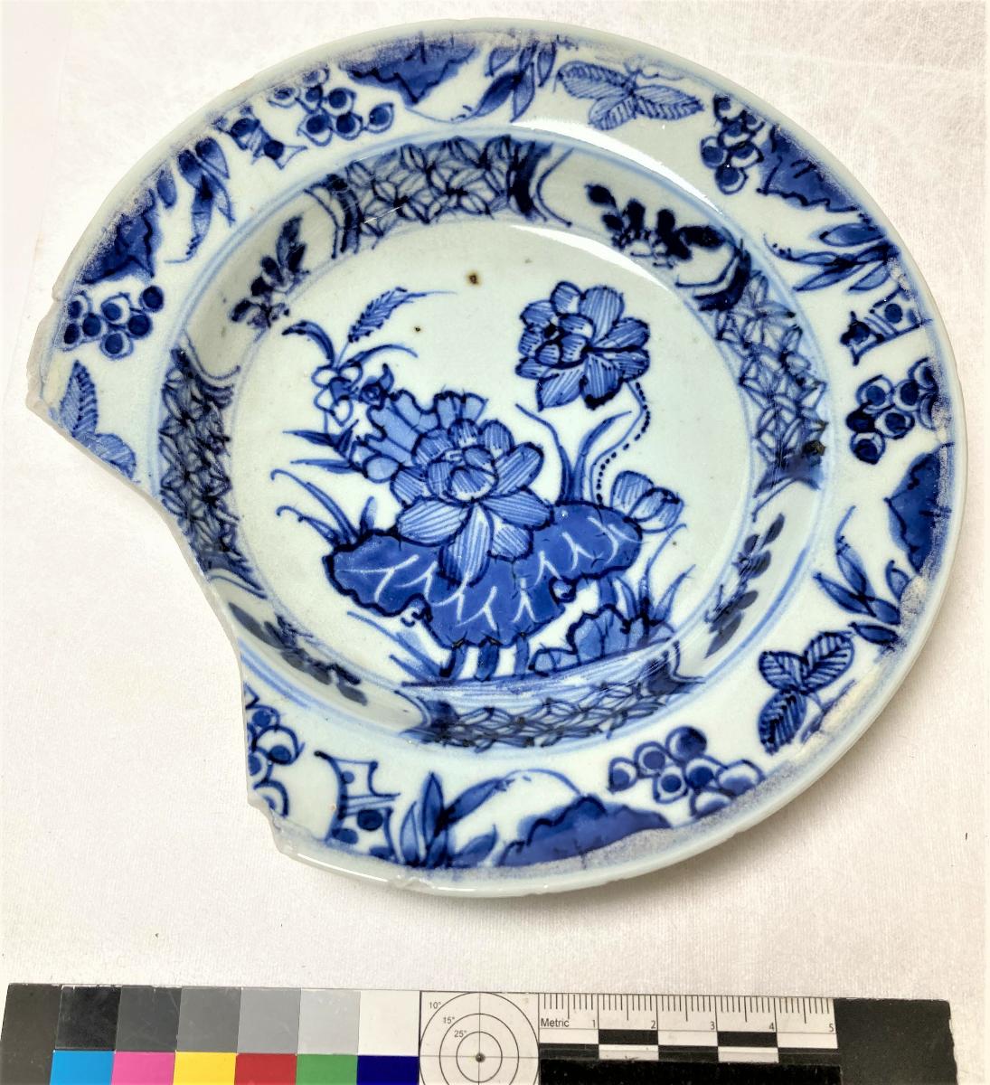 Föremålet är från vraket av ostindiefararen Götheborg, som gjorde tre resor till Kina 1739-45. Vid hemkomsten från den sista resan 12 september 1745 förliste fartyget vid grundet Hunnebådan strax utanför Nya Elfsborgs fästning. Vid flera tillfällen har material tagits upp från vraket. Föremålet kommer från de marinarkeologiska utgrävningarna på platsen 1986-1992.