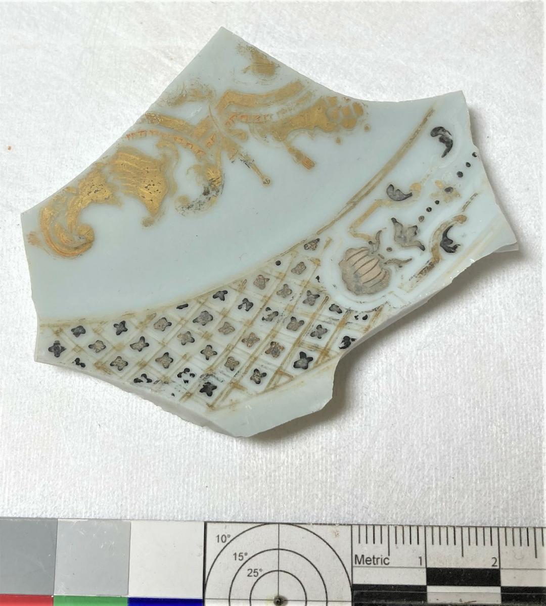 Föremålet är från vraket av ostindiefararen Götheborg, som gjorde tre resor till Kina 1739-45. Vid hemkomsten från den sista resan 12 september 1745 förliste fartyget vid grundet Hunnebådan strax utanför Nya Elfsborgs fästning. Vid flera tillfällen har material tagits upp från vraket. Föremålet kommer från de marinarkeologiska utgrävningarna på platsen 1986-1992.