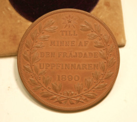 Minnesmedalj (a) över uppfinnaren John Ericsson, med tillhörande diplom (b).