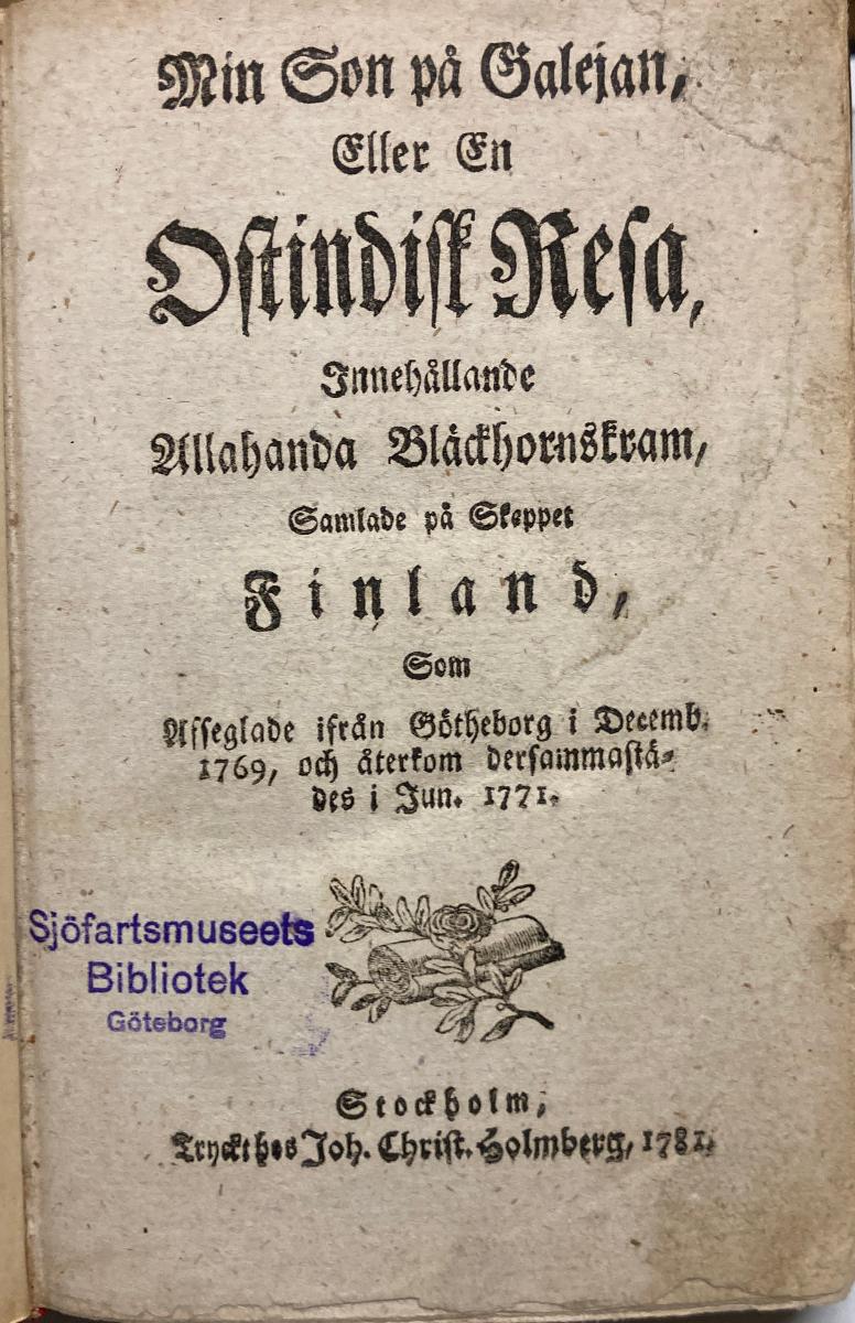 Min son på galejan, eller En ostindisk resa, innehållande allahanda bläckhornskram, samlade på skeppet Finland, som afseglade ifrån Götheborg i decemb. 1769, och återkom dersammastädes i jun. 1771.