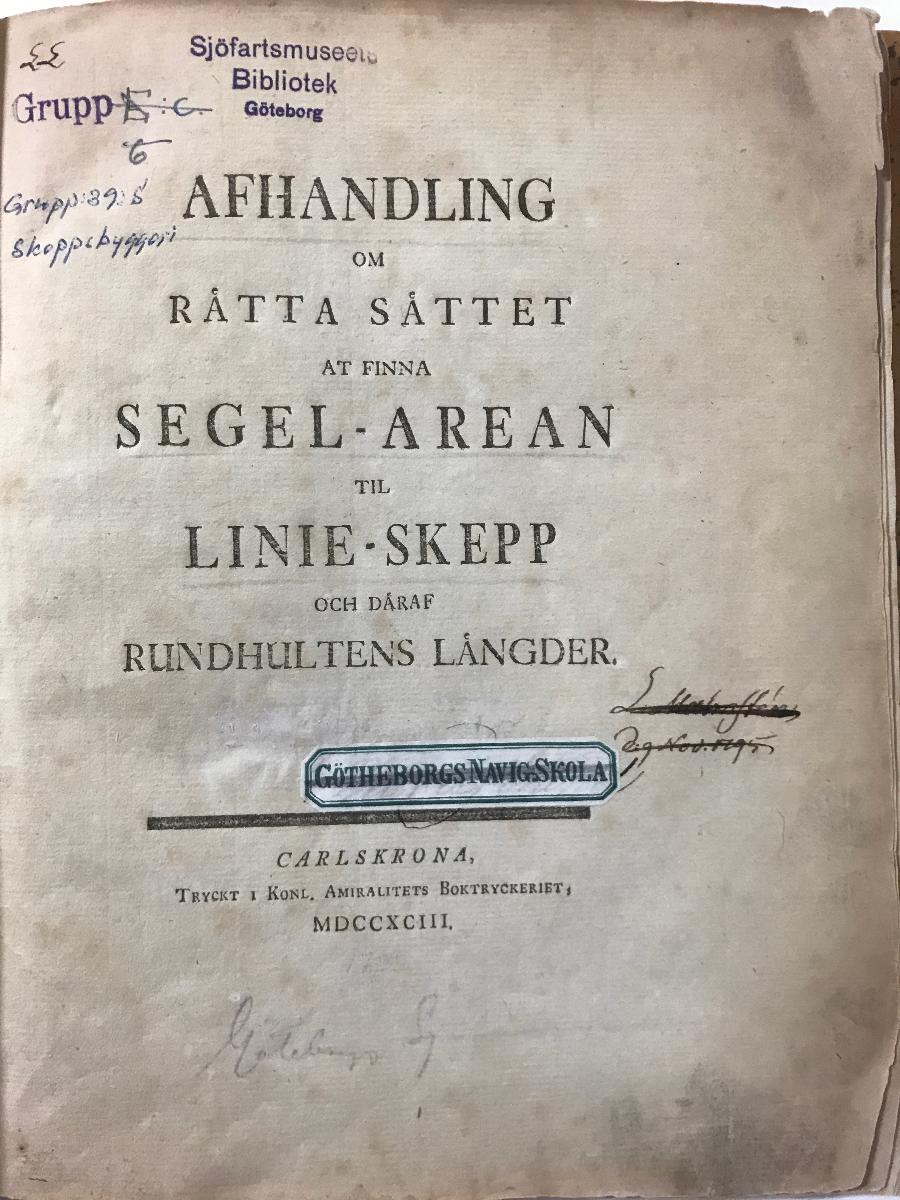 Gå tillbaka till sökLägg till i Min samlingKopiera länkSkriv utRaritet, Afhandling om rätta sättet at finna segel-arean til linie skepp....AktörerFredrik Henrik af Chapman (1721 - 1808), FörfattareKategoriRaritet (Litteratur)InventarienummerSMG50475UtställdInte utställd på museetBeskrivningSekundär inbindning