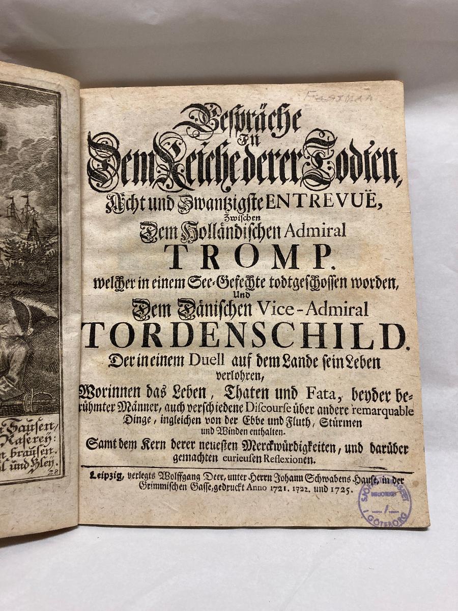 Gå tillbaka till sökLägg till i Min samlingKopiera länkSkriv utRaritet, "Bespräche in dem reiche derer Todten..."AktörerFöreningen Sveriges Flotta (1906 - 2002), Förvärvat frånKategoriRaritet (Litteratur)DateringPublicerad 1721 Tryckår 1725GeografiTillverkningsort: Leipzig (Europa, Tyskland, Sachsen)Material och teknikPapper, TryckInventarienummerSMG22872UtställdInte utställd på museet