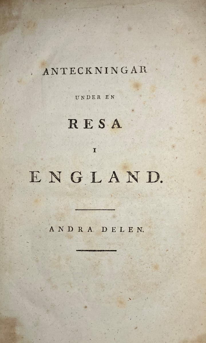 Broling, Gustaf, Anteckningar under en resa i England åren 1797, 1798 och 1799., Stockholm, 1811-1817