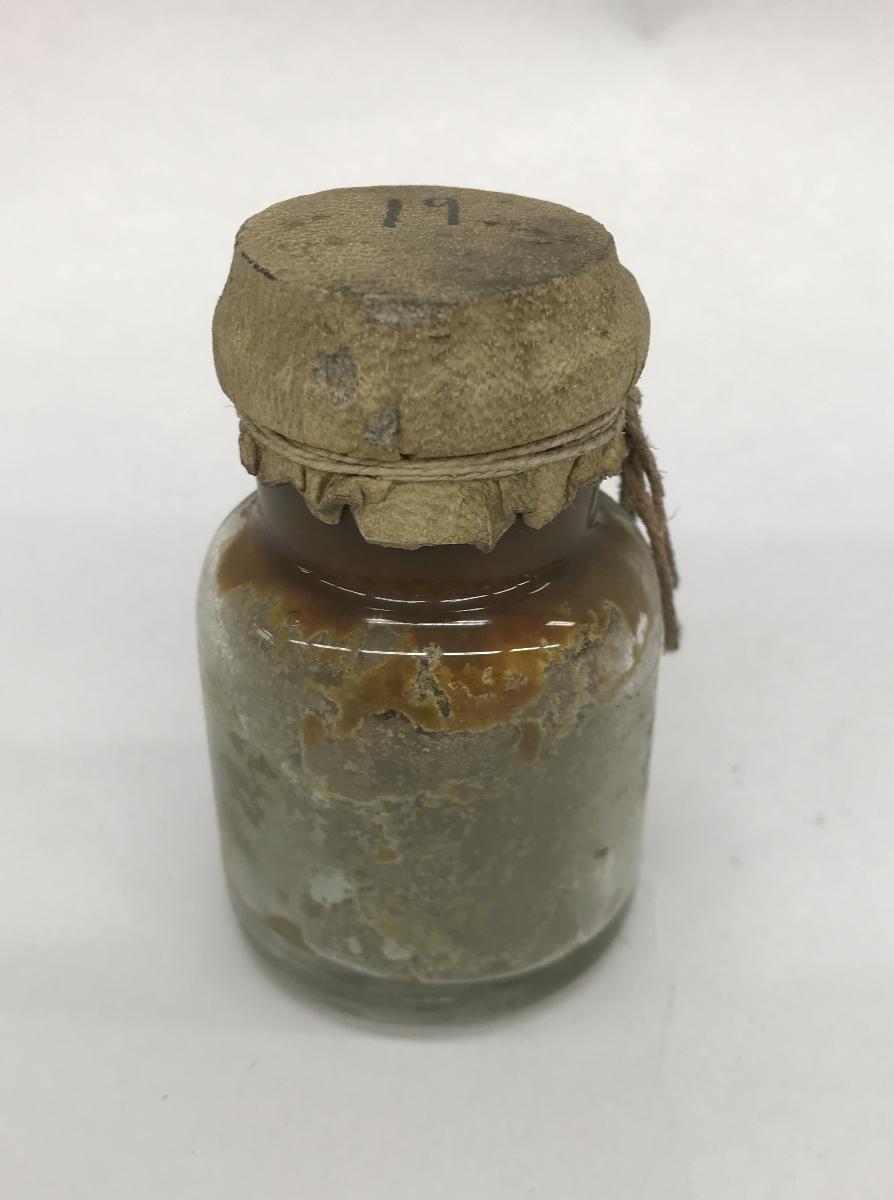 Gå tillbaka till sökLägg till i Min samlingKopiera länkSkriv utMedicinkistaAktörerJohn E. Olson (1849 - 1937), Förvärvat frånKategorimedicinförvaring (Sjukvård och hälsa) Sjukvård och hälsaMaterial och teknikGlasInventarienummerSMG4482, qUtställdInte utställd på museetBeskrivningLiten glasburk med brungrå salva och tygbeklädd kork nr 19, enligt lista Blysalva