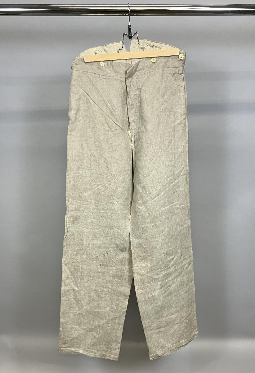 Gå tillbaka till sökLägg till i Min samlingKopiera länkSkriv utByxorAktörerKänsö Karantänstation (1819 - 1934), Förvärvat från Känsö Karantänstation (1819 - 1934), BrukareKategoribyxa (Kläder) Sjukvård och hälsaGeografiKänsö (Europa, Sverige, Västergötland, Västra Götalands, Göteborg)DimensionerGrundmått (L,B,H) 130,00 x 57,00 cmInventarienummerSMG6556, dUtställdInte utställd på museetBeskrivningOlika storlekar. Se Känsö Karantänstation.