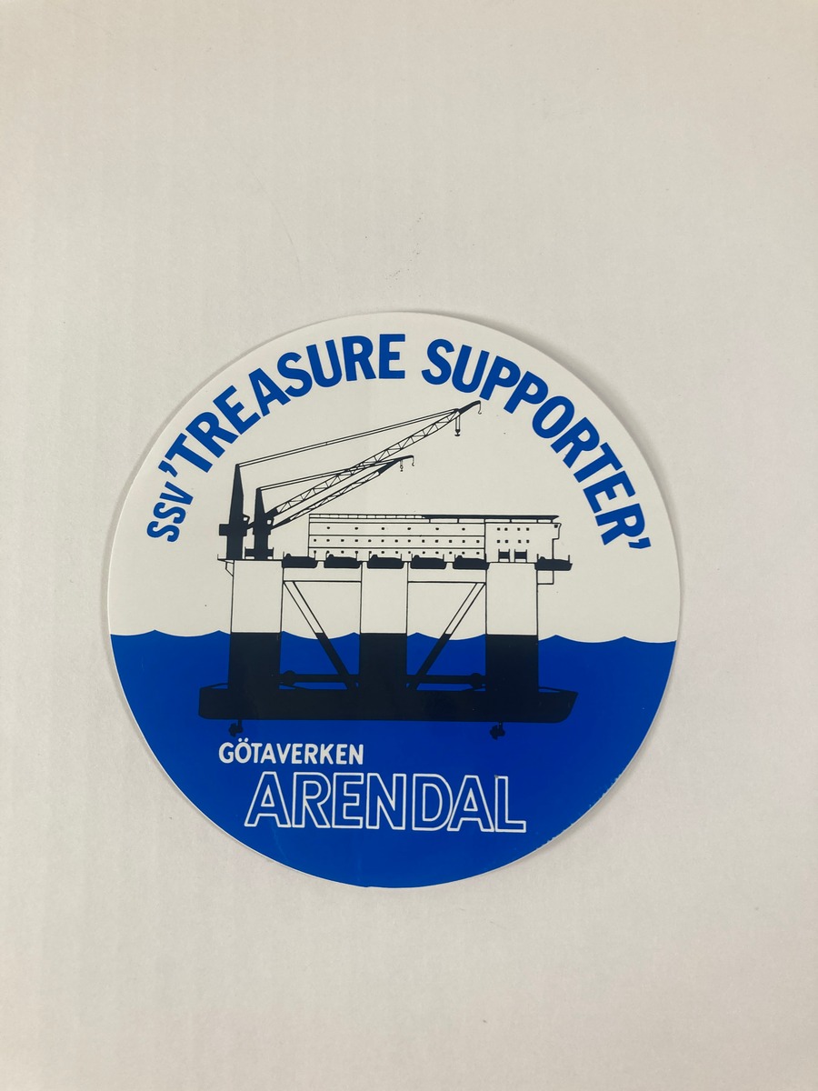 Reklamklistermärke TREASURE SUPPORTER, Götaverken Arendal.