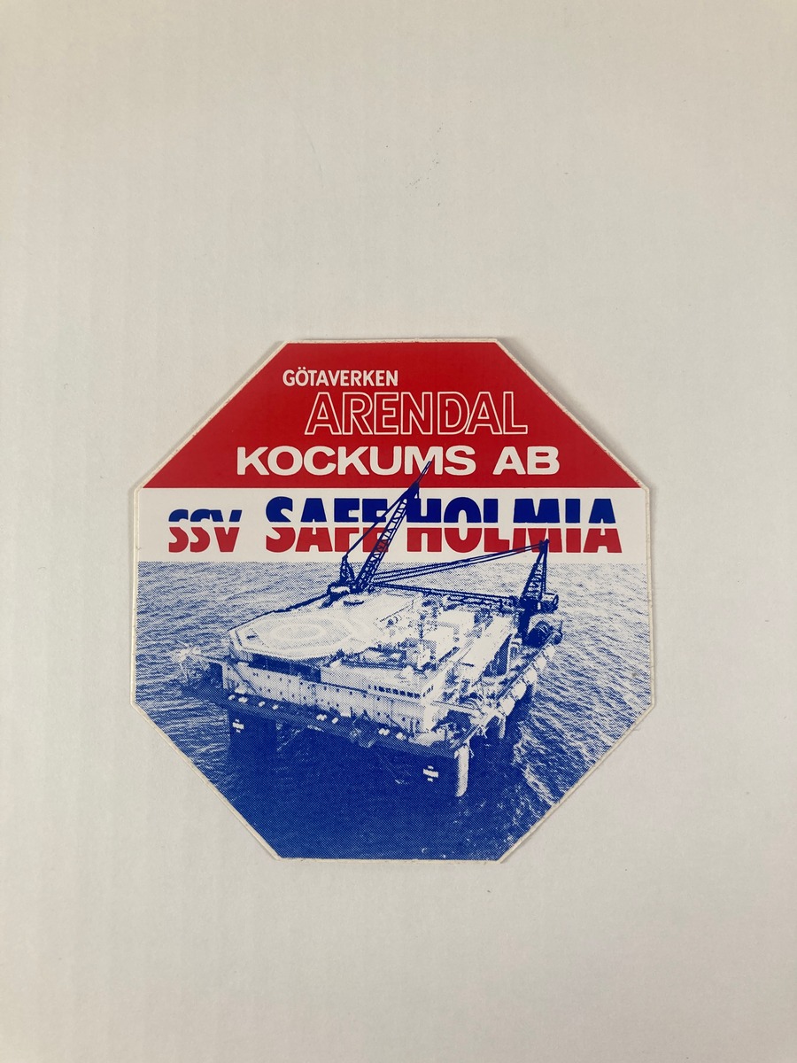 Reklamklistermärke SAFE HOLMIA, Götaverken Arendal.