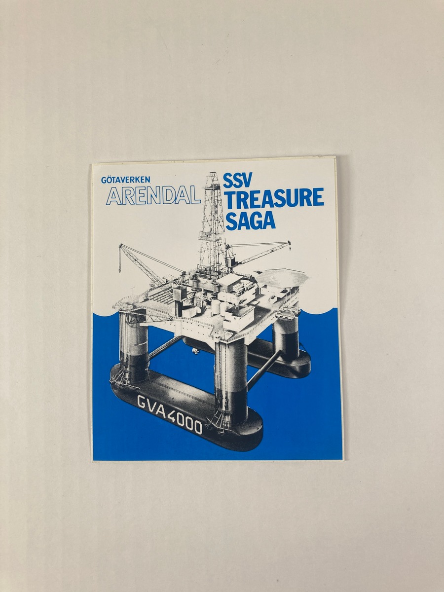 Reklamklistermärke TREASURE SAGA, Götaverken Arendal.