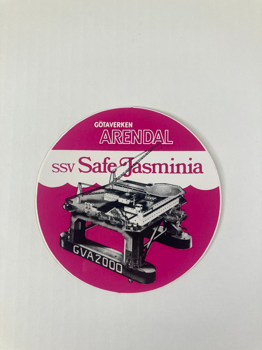 Reklamklistermärke SAFE JASMINIA, Götaverken Arendal.