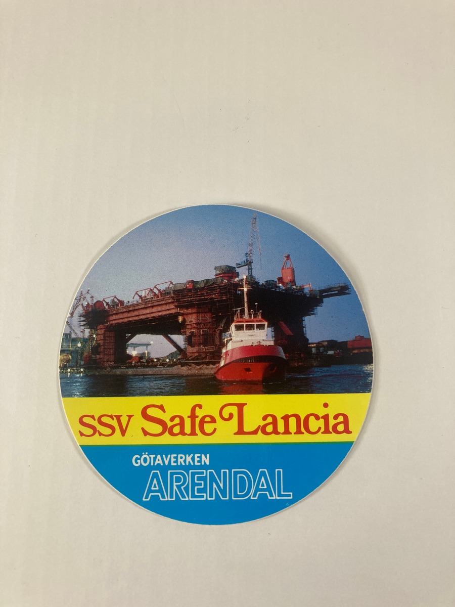 Reklamklistermärke SAFE LANCIA, Götaverken Arendal.