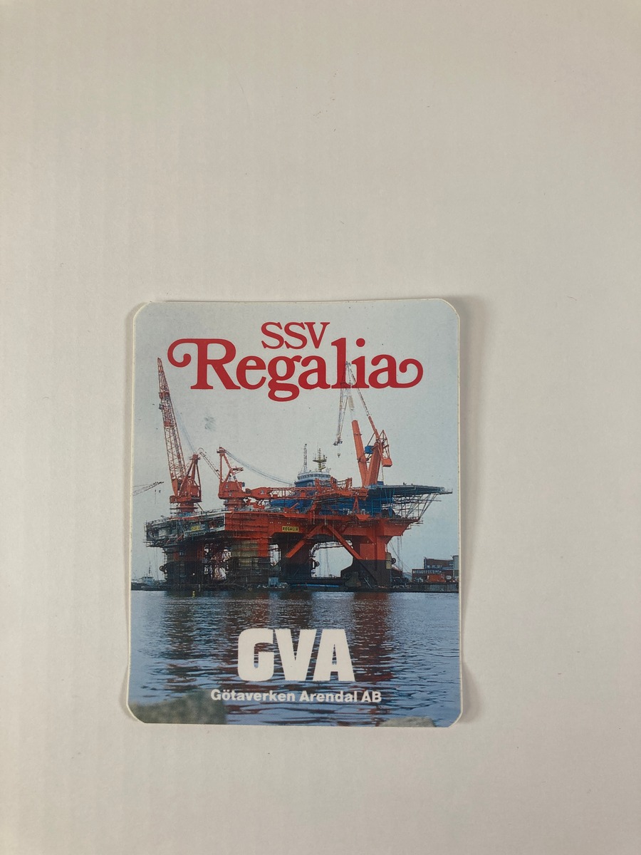 Reklamklistermärke REGALIA, Götaverken Arendal.