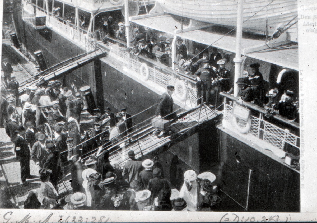 Gå tillbaka till sökLägg till i Min samlingKopiera länkSkriv utEmigranter går ombord fartyg i Göteborgs hamnAktörerGöteborgs Stadsmuseum, Förvärvat frånKategoriEmigration Göteborgs hamn befäl och besättning (Personfoto) passagerare (Personfoto)Datering1916GeografiGöteborg (Europa, Sverige, Västergötland, Västra Götalands, Göteborg)Material och teknikdiaInventarienummerSMGF9807UtställdInte utställd på museet