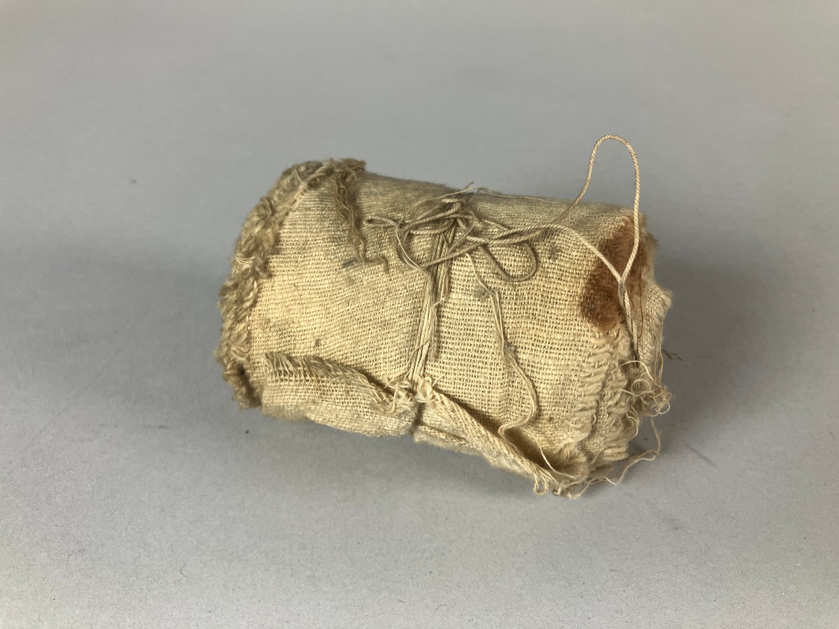 Beskrivning: Ådringsmålad kista i furu med 23 fack för flaskor och burkar, ett större fack i mitten och 22 mindre längst kanterna. Lås med saknad nyckel. Innehåller 21 flaskor varav de flesta är tomma. Utöver dessa finns en rulle bandage i bomull samt en rulle ylleväv 14 cm bred och 260 cm lång. Den senare kraftigt angripen av äldre malangrepp. Ett par öronskydd samt en svart slang med reglage i backelit. En rulle fetvadd i papper har dokumenterats och gallrats.