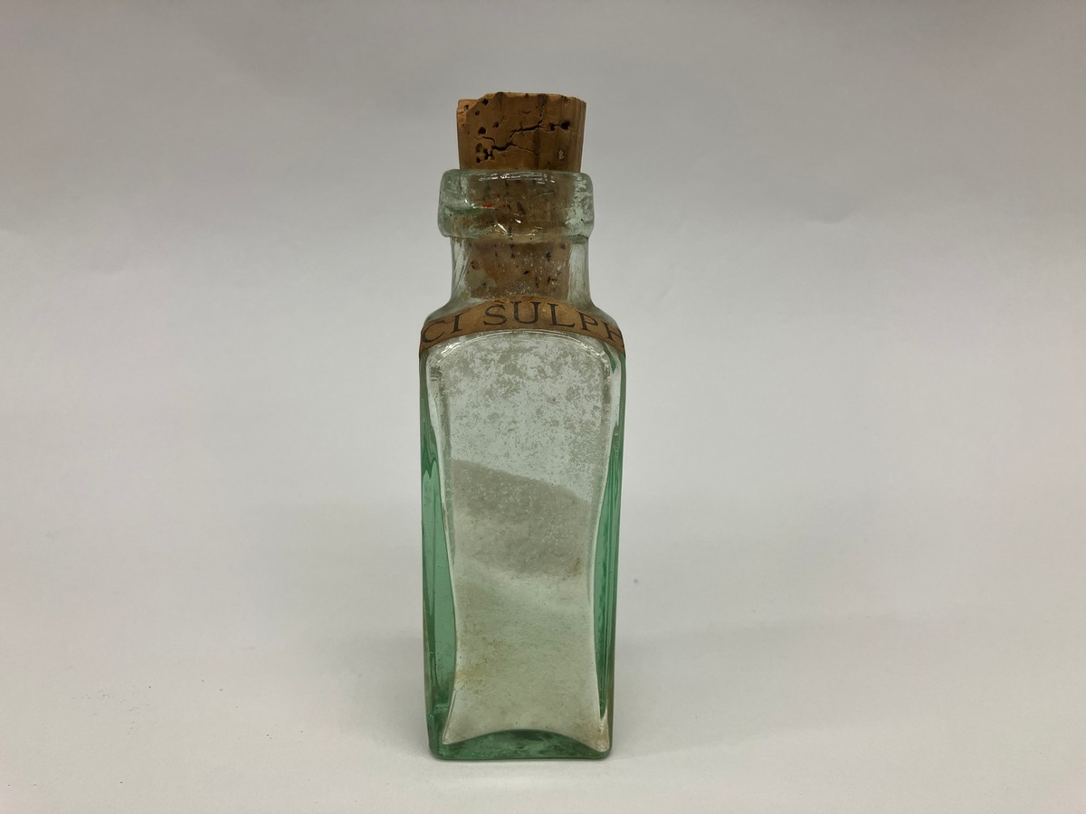 Ingår med flera preparat i stor medicinkista med lock och en utdragbar låda. Kistan har tillhört fartyget CONDOREN byggt 1864 i Nordamerika och köptes av Rederi AB Örnen 1874. När de lade ner verksamheten 1893 köptes fartyget av John E. Olson som ägde det i två år, innan han sålde det vidare för upphuggning