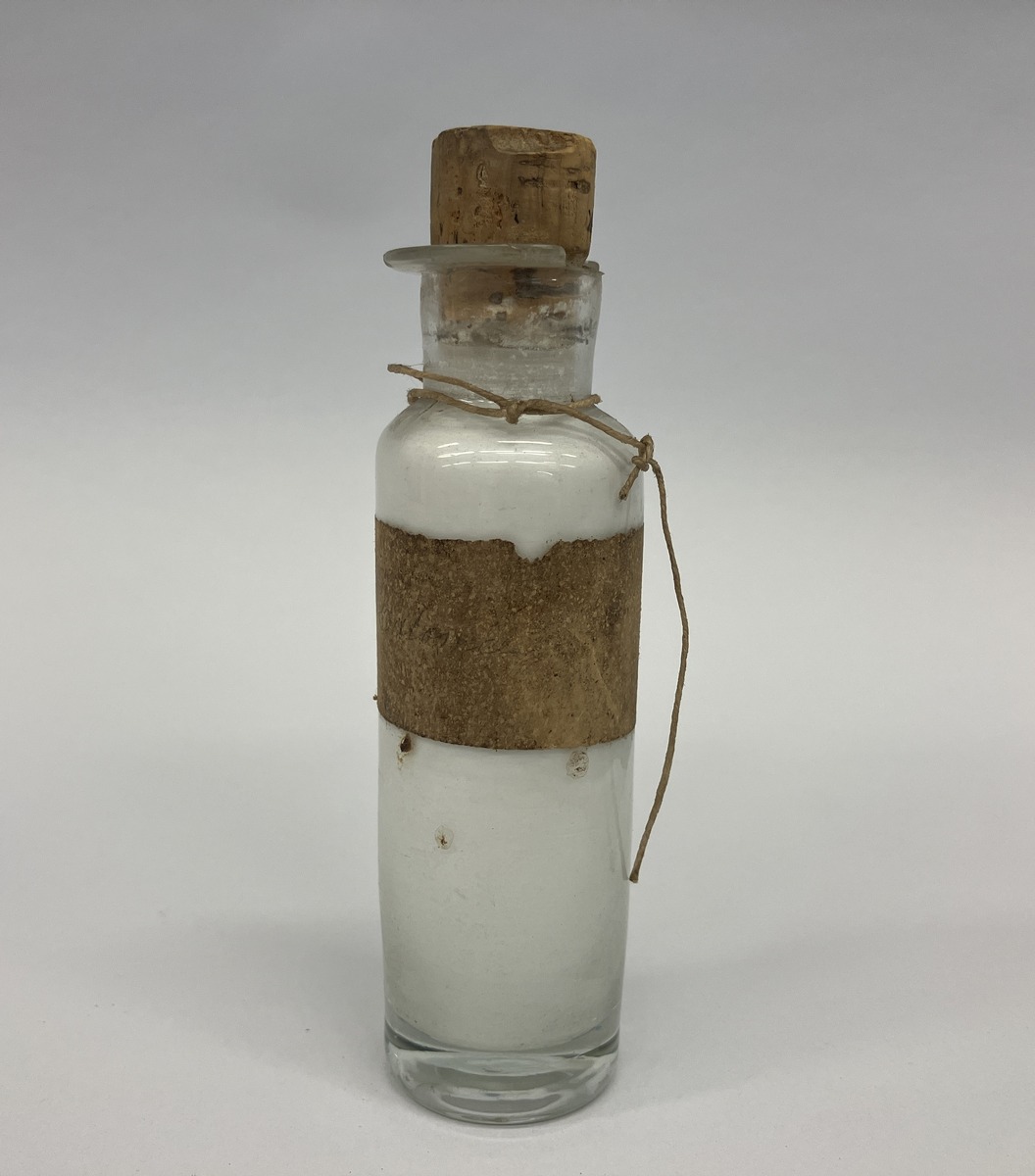 Ingår med flera preparat i stor medicinkista med lock och en utdragbar låda. Kistan har tillhört fartyget CONDOREN byggt 1864 i Nordamerika och köptes av Rederi AB Örnen 1874. När de lade ner verksamheten 1893 köptes fartyget av John E. Olson som ägde det i två år, innan han sålde det vidare för upphuggning