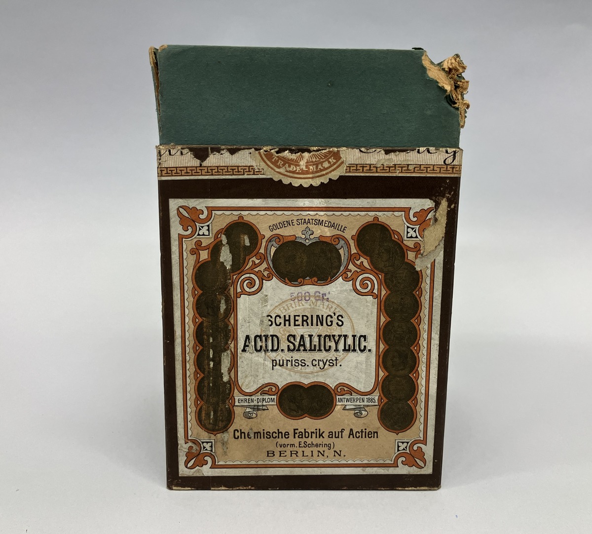 Ingår med flera preparat i stor medicinkista med lock och en utdragbar låda. Kistan har tillhört fartyget CONDOREN byggt 1864 i Nordamerika och köptes av Rederi AB Örnen 1874. När de lade ner verksamheten 1893 köptes fartyget av John E. Olson som ägde det i två år, innan han sålde det vidare för upphuggning