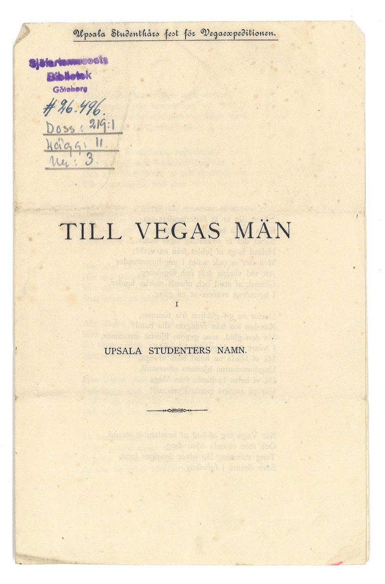 Skrift från Uppsala Studentkårs fest för Vegaexpeditionen