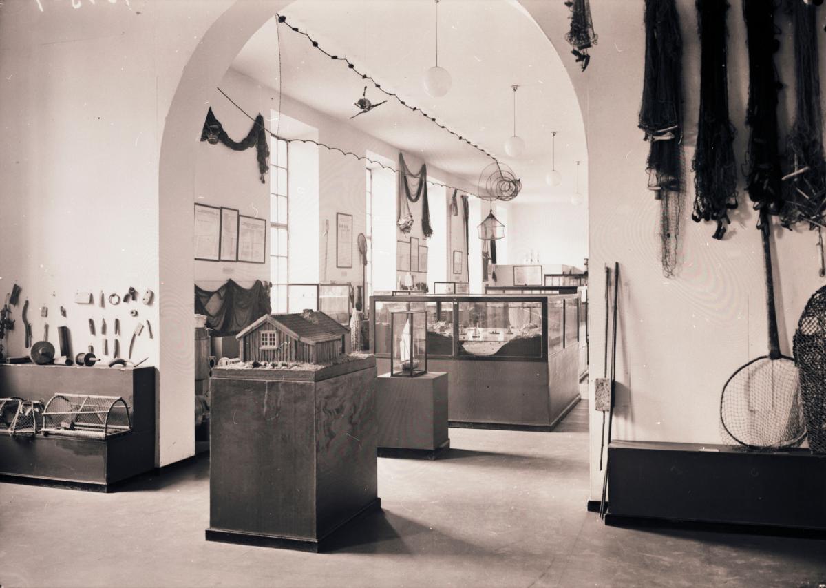 Bilden visar museets fiskeutställning på andra våningen, så som den såg ut från det att museet öppnade på Stigbergstorget sommaren 1933 och några årtionden framåt. Bilden är sannolikt tagen inför eller omkring museets öppnande 1933.