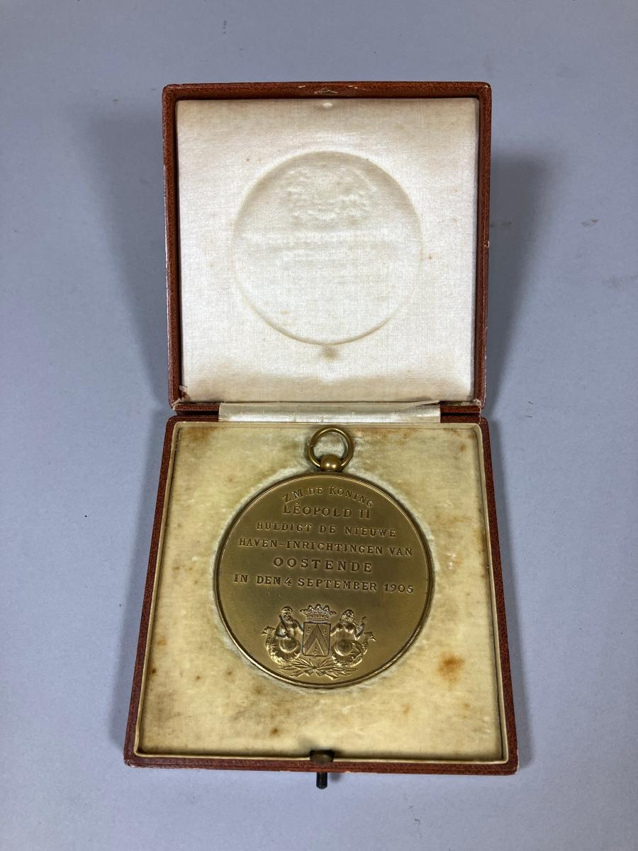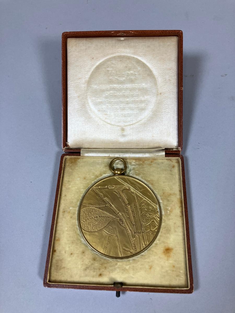 Medalj i mässing med tillhörande etui. framställer karta över....