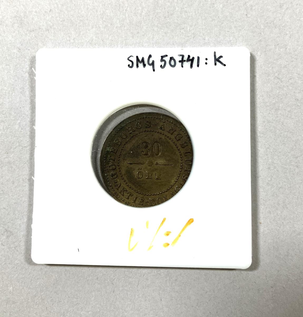 En pollett 30 öre för, Göteborgs ångslups aktiebolag, förvarad i plastfodral.