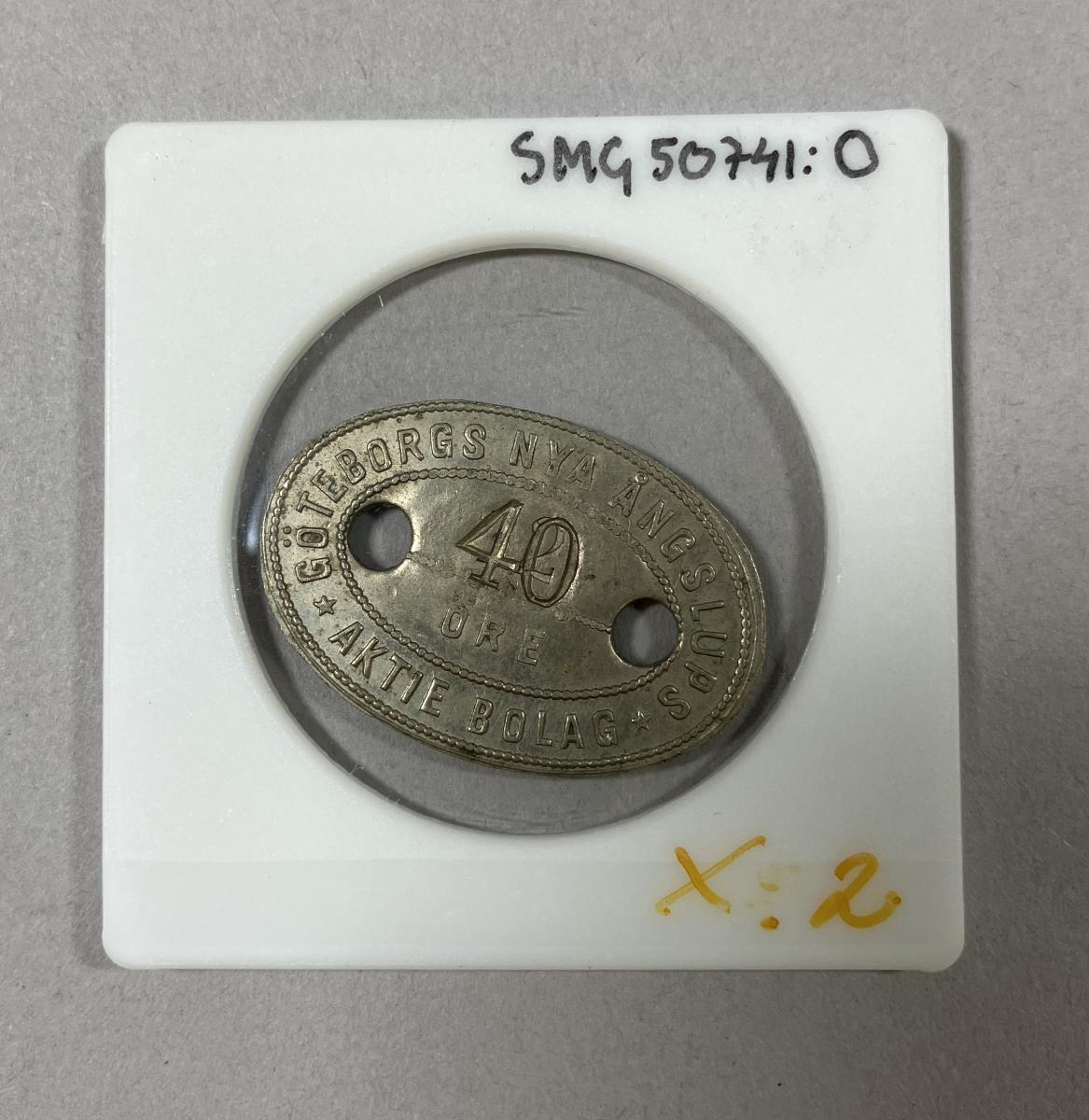 En pollett 40 öre för, Göteborgs Nya ångslups aktiebolag, förvarad i plastfodral.