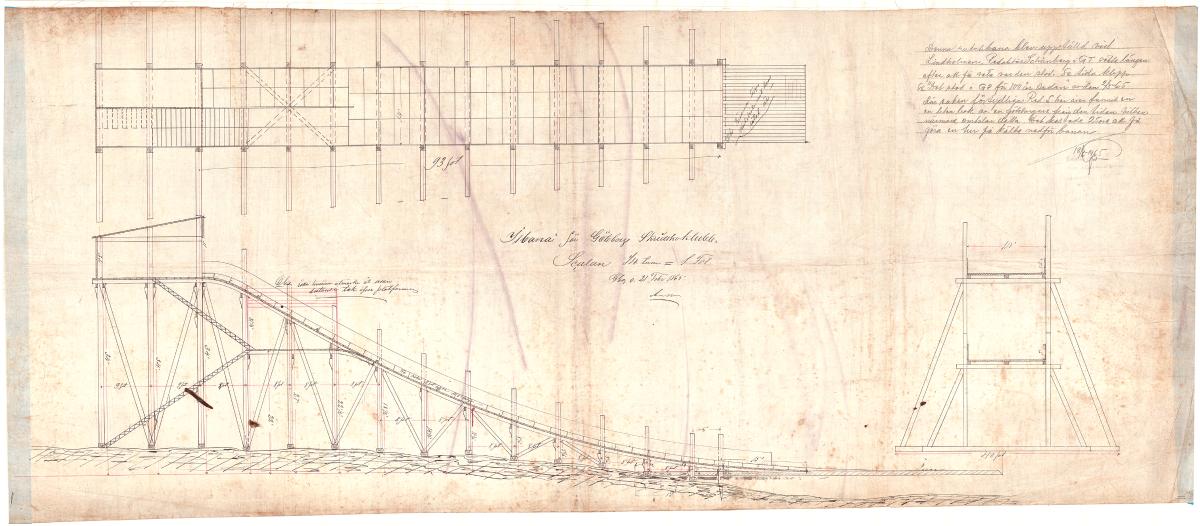 Se "Det stod i GP för 100 år sedan" den 2/3-1965 där saken förtydligas. Red. S. har även funnit en liten bok av en göteborgare den tiden, Vilken närmare omtalar detta. Det kostade 25 öre att få göra en tur på kälke nedför banan.