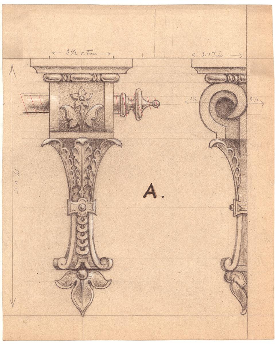 Ritningen finns i Lindholmens ritningsarkiv med ritnings nr 1268 vilket är en samling av ritningar/skisser benämnda i ritningsliggaren som ornamentskisser till diverse stockholmsbåtar.
