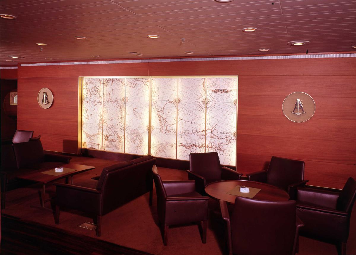 KUNGSHOLM interiör, Stängd bar (sjökorten fördragna) i Observation Lounge