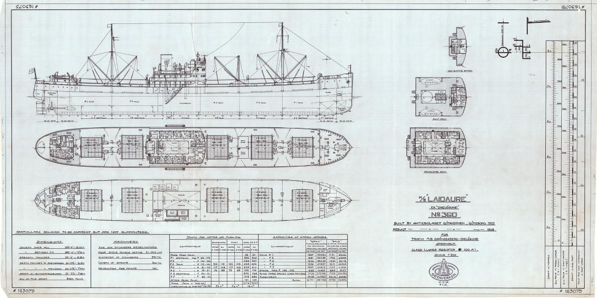 Ritning av LAIDAURE ex OXELÖSUND efter ombyggnad 1948.Kapacitetsplan/generalarrangemang