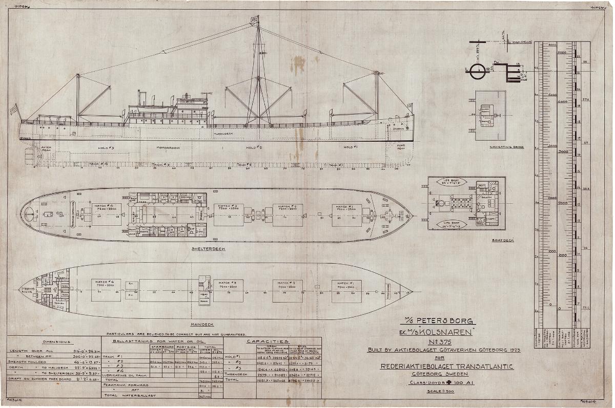 Fartyget levererades 1923 till Rederi AB Transatlantic, Göteborg. Ritningen ändrad i samband med att fartyget övertogs av Rederi AB Bifrost, Göteborg 1951.Kapacitetsplan/generalarrangemang
