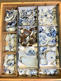 Svenska Ostindiska Compagniets ostindiefarare Götheborg, gjorde tre resor till Kina 1739-1745. Vid hemkomsten från den sista resan 12 september 1745 förliste fartyget vid grundet Hunnebådan strax utanför Nya Elfsborgs fästning. Vid flera tillfällen har material tagits upp från vraket. Föremålen kommer från de marinarkeologiska utgrävningarna på platsen 1986-1992.